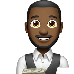 Guy with brown skin in white long sleeve wins money in his raised hands emoji
