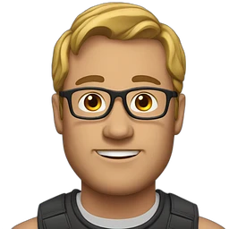 Guy with blonde and black dreadlocks tied behind head, with big frame glasses, with beard and mustache, a trucker hat, septum ring emoji
