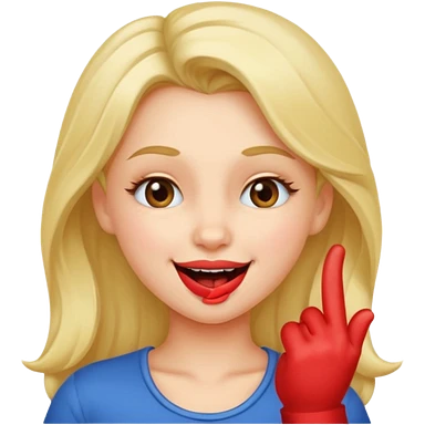 Girl with a finger on her teeth winking make it flirty and keep her hair open emoji