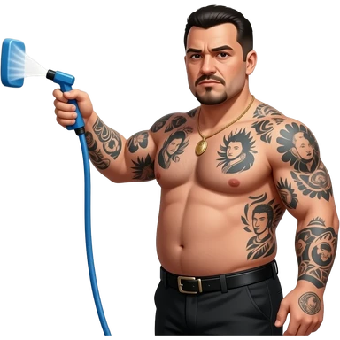 Fat gangster, Italian guy power washing with a lot of tattoos emoji
