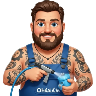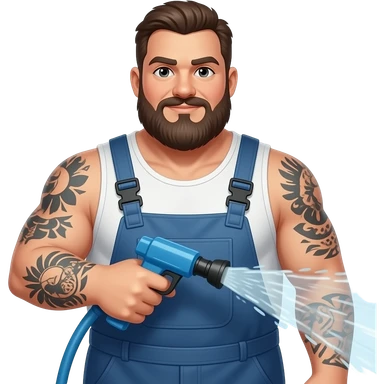 Fat, Italian guy power washing with a lot of tattoos emoji