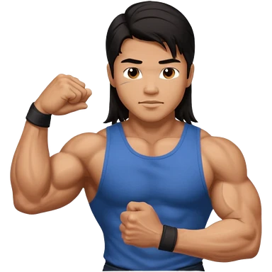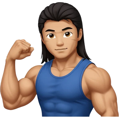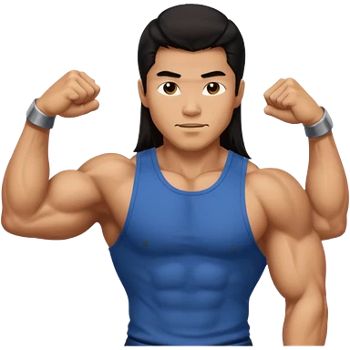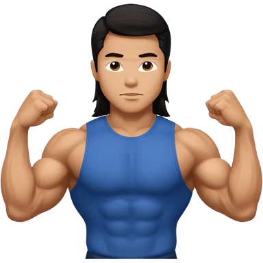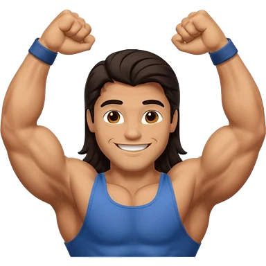 guy with biceps, long yellow hair, blue t-shirt emoji | AI Emoji Generator