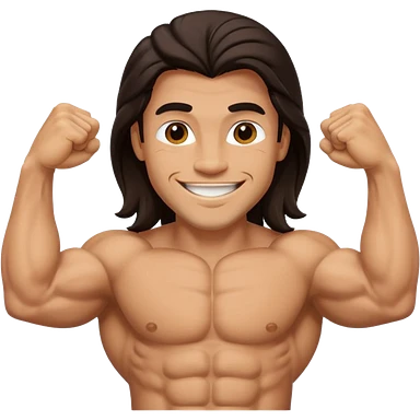 generate a pretty tan bratz boy with black messy hair flexing his biceps. wearing white tshirt emoji