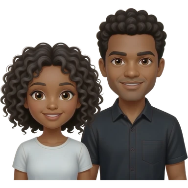 Guy with black curly hair and a beard and brown eyes and his wife with brown curly long hair and brown eyes and makeup on emoji