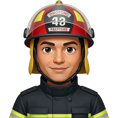 a light color asian guy like a firefighter emoji filipino looking with black and red uniform put ROOC in Helmet emoji