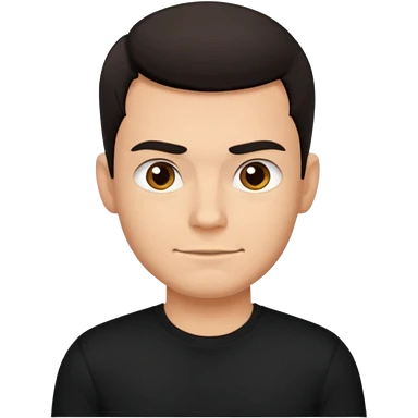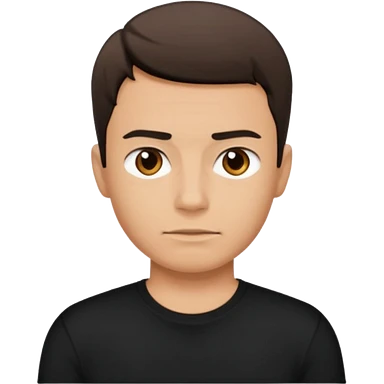A white teenager boy with big brown eyes and middle-parted red hair, wearing a black T-shirt. emoji
