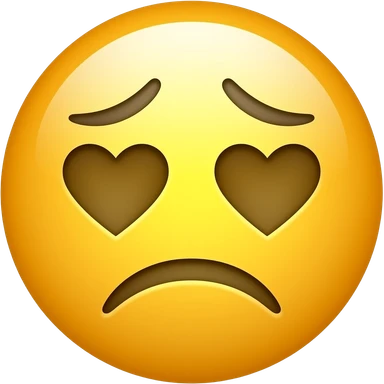 Sad eyebrows, red heart eyes, frown, yellow circle emoji