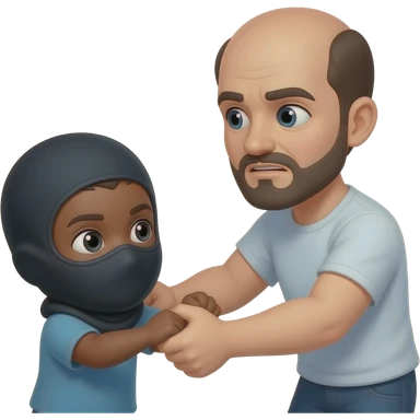 black child wearing a balaclava getting held like a baby by a white guy with a bald head black goatee emoji
