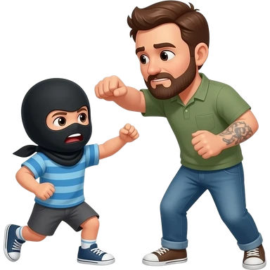black child wearing a balaclava on getting beat up by an older white guy with a bald head black goatee emoji