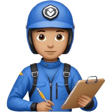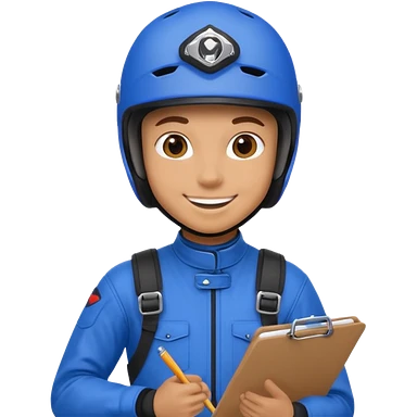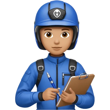 dirtbike rider in blue gear with clipboard emoji