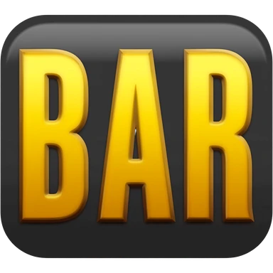 Slot machine symbol with the word ‘BAR’ in bold golden-yellow letters inside a dark rounded rectangle, emoji-style. emoji