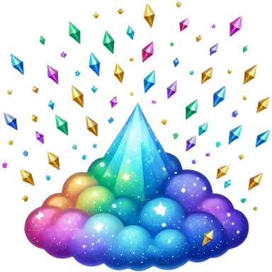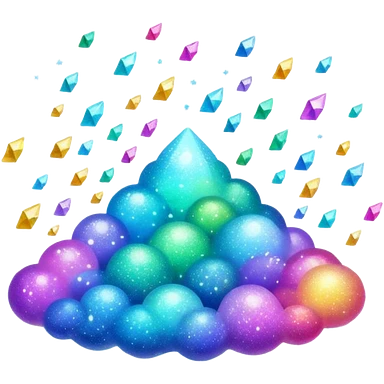 3D Apple-style emoji of scattered glitter, sparkling and shining in multiple colors. Rounded, glossy, smooth, soft shadows, white background. emoji