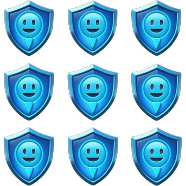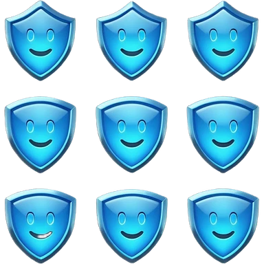 Futuristic glowing blue emoji badge set for the brand name “DRAEV” — includes shield, checkmark, camera, briefcase, verified tick, bot face, and rocket. Neon blue glow, dark gradient background, cyber aesthetic, 3D soft lighting, premium tech style. emoji