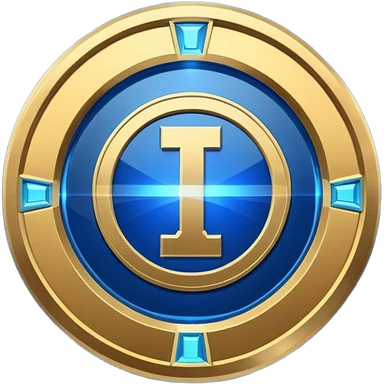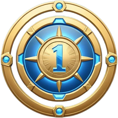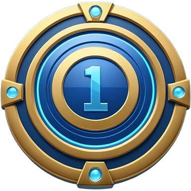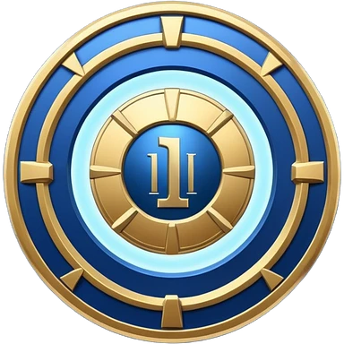 Futuristic achievement medal badge, circular shield emblem with engraved Roman numeral I and subtle “12M” detail, metallic gold and deep blue glow, sci-fi web3 game UI style, polished 3D game asset, soft energy aura, dark background, centered composition, high detail emoji