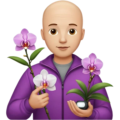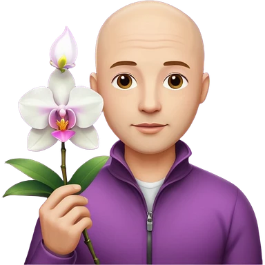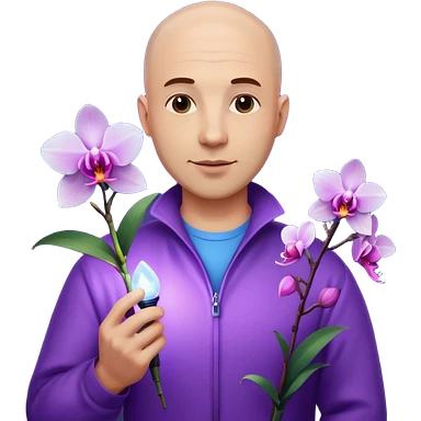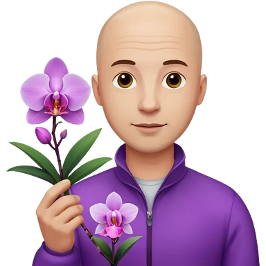 ստեղծիր մոտ 35 տարեկան քյաչալ տղամարդ, որի մի ձեռքին օրխիդեա ծաղիկ է իսկ մյուս ձեռքին լեդ լամպ emoji