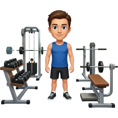 Gym rat with light brown hair and black t shirt, and messy hair. And muscular emoji