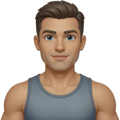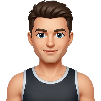 Gym rat with light brown hair and black t shirt, and messy hair. And muscular ,and happy a little emoji