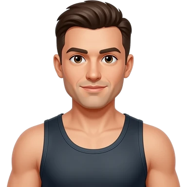 Gym rat with light brown hair and black t shirt, and messy hair. And muscular emoji