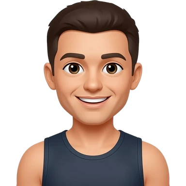 Gym rat with light brown hair and black t shirt, and messy hair. And muscular ,and happy a little emoji | AI Emoji Generator