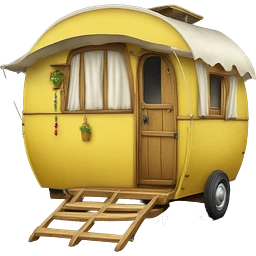 Realistic yellow vintage round gypsy caravan wagon camper emoji