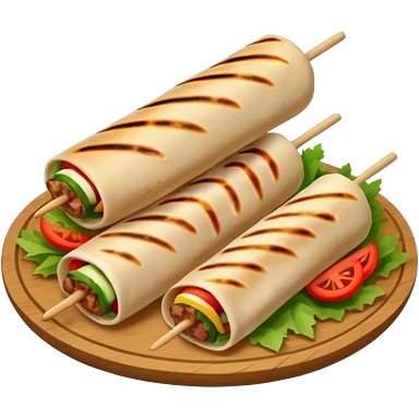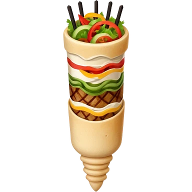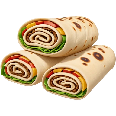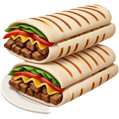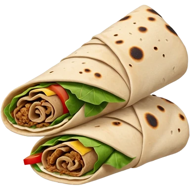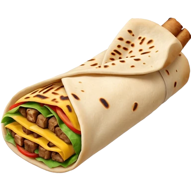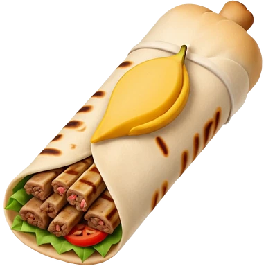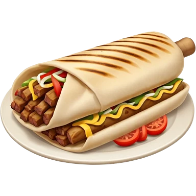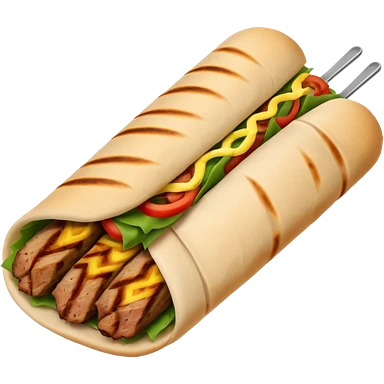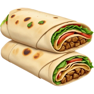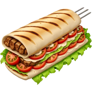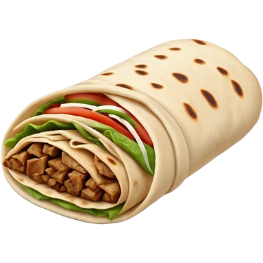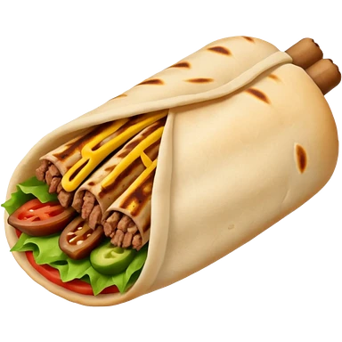 Chicken shawarma wrap with pickles tomato’s tzatziki and fries inside with steam coming off emoji