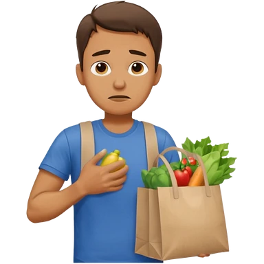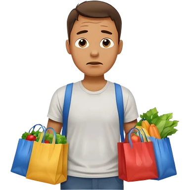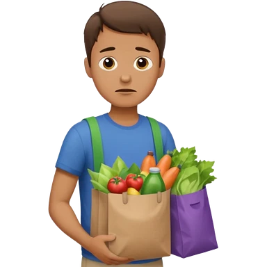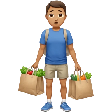 Hombre cargando bolsas de supermercado con dificultad emoji