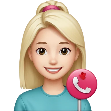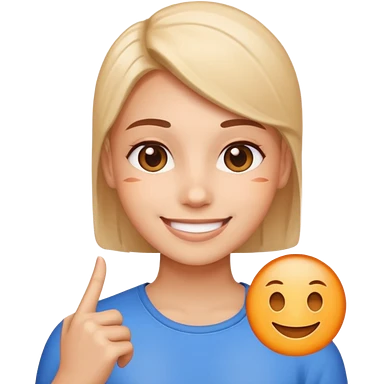 happy excited woman with curly long blond hair, brown eyes, wearing an off-shoulder top, emoji