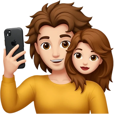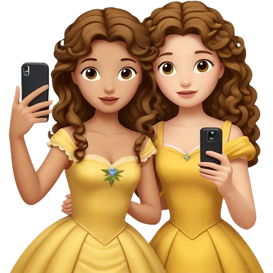 Haz un dos persones una la bella de bella y la bèstia y la otra uo con el pelo rizado largo haciendose un selfie emoji