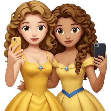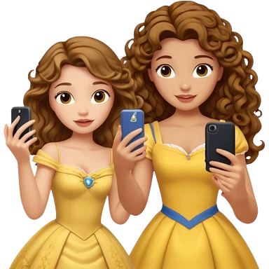 Haz un dos chicad una la princesa Bella de Disney y la otra uo con el pelo rizado largo haciendose un selfie como si et UVI ETB en el perquè de isney emoji
