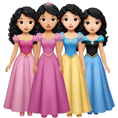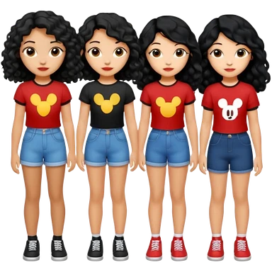 Haz algo relaciono con Disney donde haya quatre chicas con el tono de piel carne, una con el pelo rizado largo, una con el pelo muy corto negro, una con el cabello ondulado mediano y la otra con el pelo negro largo para poner en la parte delantera de la camiseta emoji