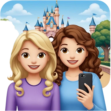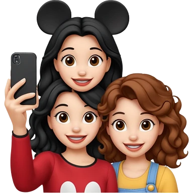 Haz un dos chicad una la bella de Disney y la otra uo con el pelo rizado largo haciendose un selfie como si et UVI ETB en el perquè de isney emoji