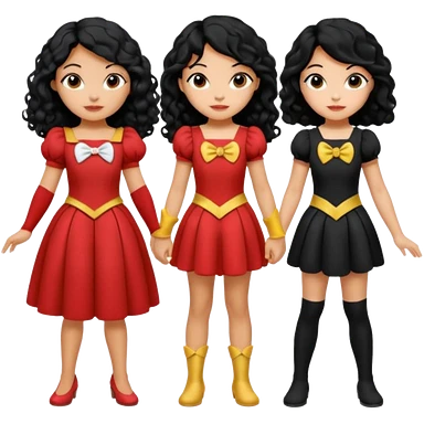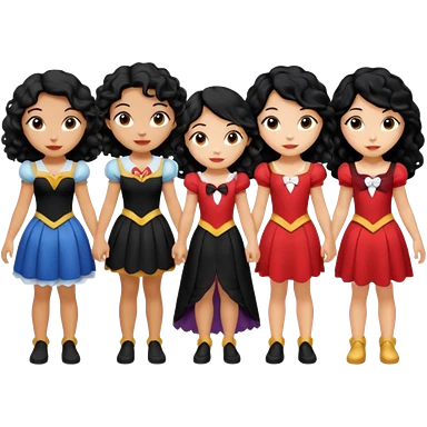 Haz algo relaciono con Disney donde haya quatre chicas con el tono de piel carne, una con el pelo rizado largo, una con el pelo muy corto negro, una con el cabello ondulado mediano y la otra con el pelo negro largo emoji