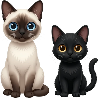 Haceme un gato blanco tipo siames con un color muy tenue en sus zonascolor de los ojos azules con un gatito negro y los ojos marrones emoji