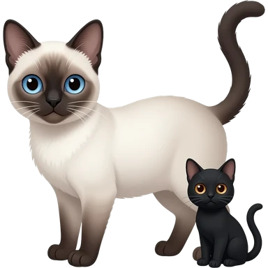 Haceme un gato blanco tipo siames color de los ojos azules con un gatito negro y los ojos marrones emoji