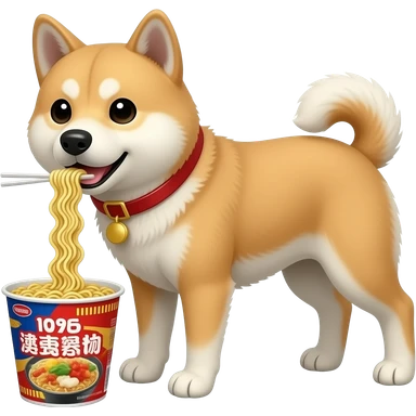 Hachiko dog in chibi cute animation standing while cooking instant noodles emoji