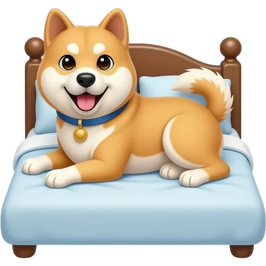 Hachiko dog in chibi cute animation lying on bed emoji