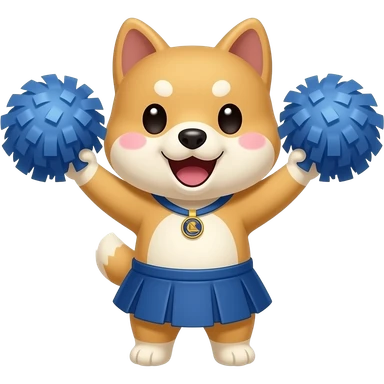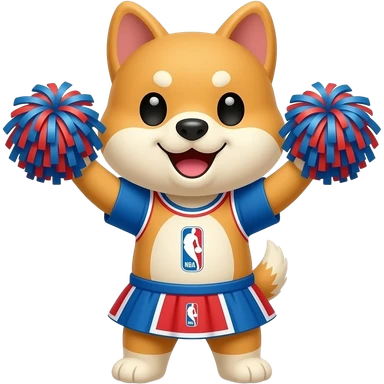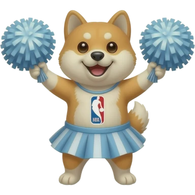 Hachiko dog in chibi cute animation as nba fans cheeringbwith pom poms qearing skirt emoji