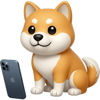 Hachiko dog in chibi cute animation sitting down holding mobile browsing online emoji