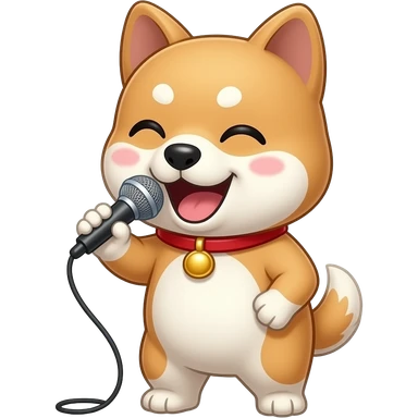 Hachiko dog in chibi cute animation standing on 2 legs singing looking drunk emoji