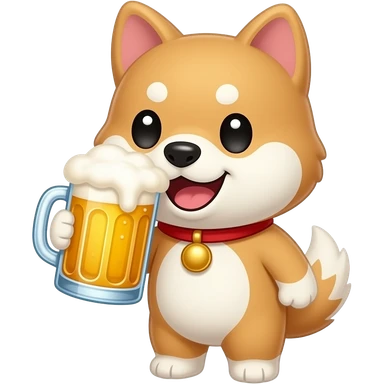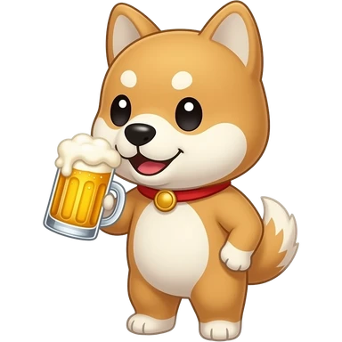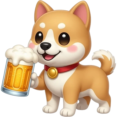 Hachiko dog in chibi cute animation standing while chugging beers emoji