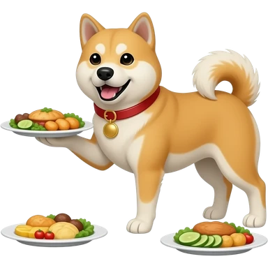 Hachiko dog in chibi cute animation serving plates of food emoji