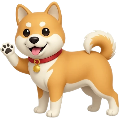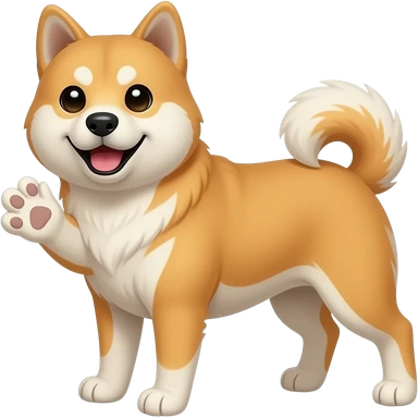 Hachiko dog in cute animation sitting down waving with 1 front paws emoji | AI Emoji Generator