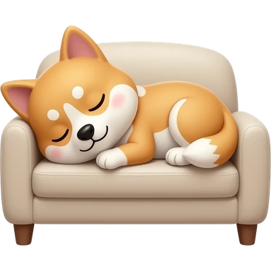 Hachiko dog in chibi cute animation lyying down on a couch sleeping emoji