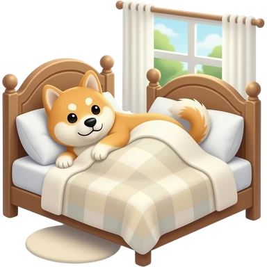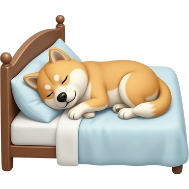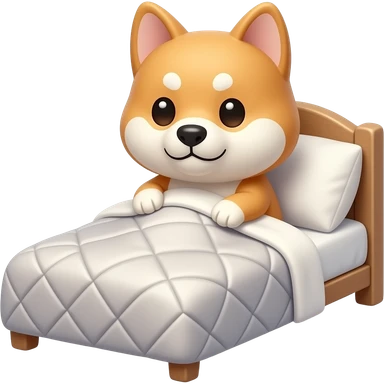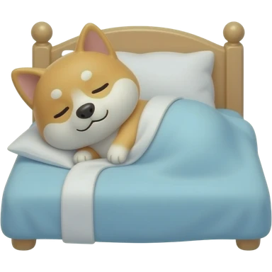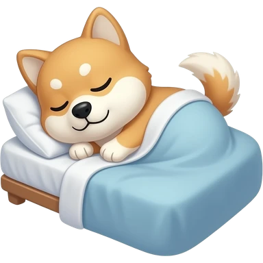 Hachiko dog in chibi cute animation tucked in bed , sleeping emoji