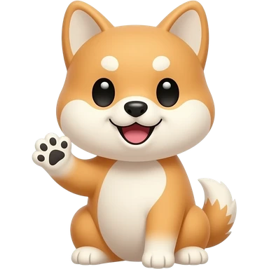 Hachiko dog in chibi cute animation sitting down waving with 1 front paws emoji