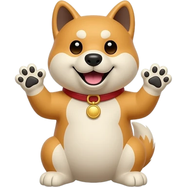 Hachiko dog in cute animation sitting down waving with 2 front paws emoji