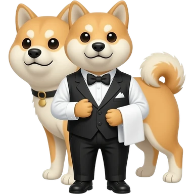 Hachiko dog in chibi cute animation working as waiter emoji