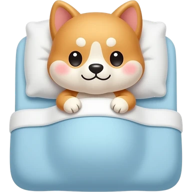 Hachiko dog in chibi cute animation tucked in bed emoji