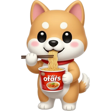 Hachiko dog in chibi cute animation cooking instant noodles emoji