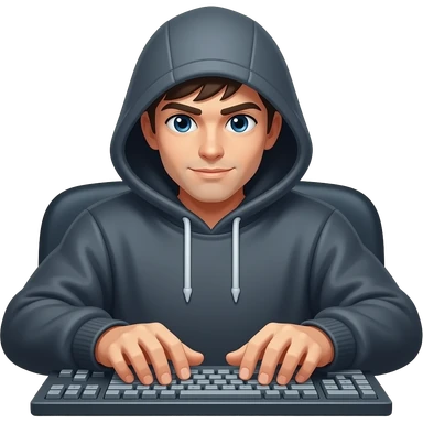 hacker typing with computer and wear a hoody emoji